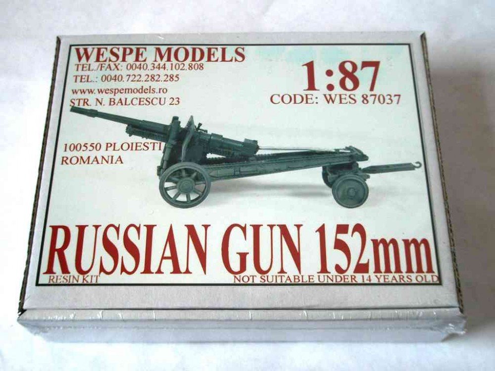 The 1:87 scale is the practical sweet spot for many hobbyists because it integrates with standard HO rail and HO-scale vehicle collections. The benefit is compatibility: you can place the RUSSIAN GUN 152 mm alongside common 1:87 trucks, trailers, rail wagons, buildings, and figures without the subtle “wrong size” effect that breaks immersion. It also means you can use your existing terrain materials and accessories—sandbags, fencing, crates, and groundwork textures—without having to rethink proportions. For collectors, 1:87 makes display planning easier: the model fits into typical shelves and cases meant for HO pieces while still presenting enough presence to stand out.