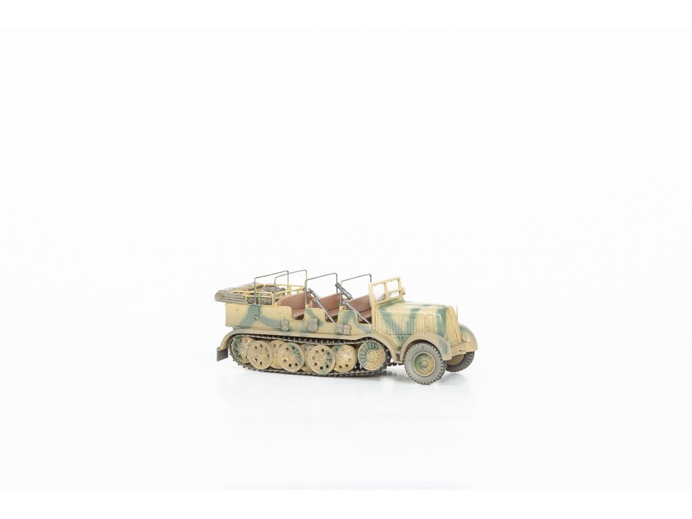 Many HO-scale builders run into the same issue: it’s easy to find tanks, trucks, and a few light utility vehicles, but much harder to represent the real heavy equipment that made historical logistics work. That gap can leave scenes feeling incomplete—especially when you’re modeling towing, transport, engineering, or battlefield support. The Sd Kfz 8 DB10 solves that by giving you a recognizable heavy half-track in the correct 1:87 proportion, letting you create scenes where large loads, heavy guns, or recovery operations actually make sense. Instead of “just another vehicle,” it becomes a visual explanation for how equipment moved and how units operated.